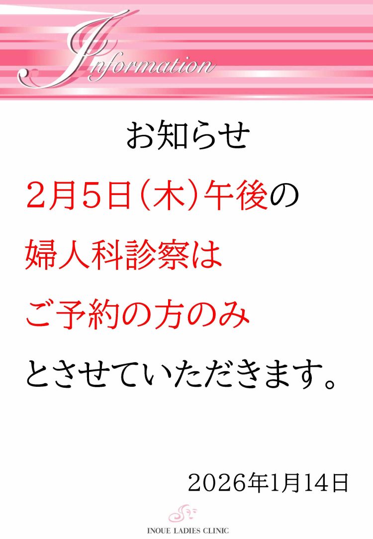 婦人科(時間予約)、4Dエコー外来を受診の新規の患者様はインターネットから初診予約をお取りいただけます。